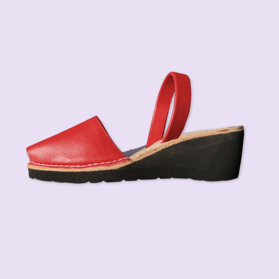 - Mujer - Piel Box - Cuña Alta - Color Rojo