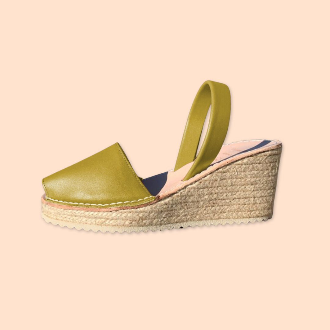 Mujer - Piel Box - Cuña Alta Esparto - Color Khaki