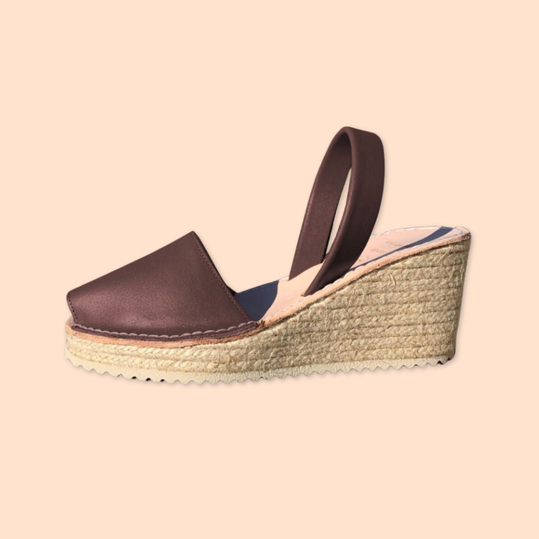Mujer - Piel Box - Cuña Alta Esparto - Color Marrón Oscuro