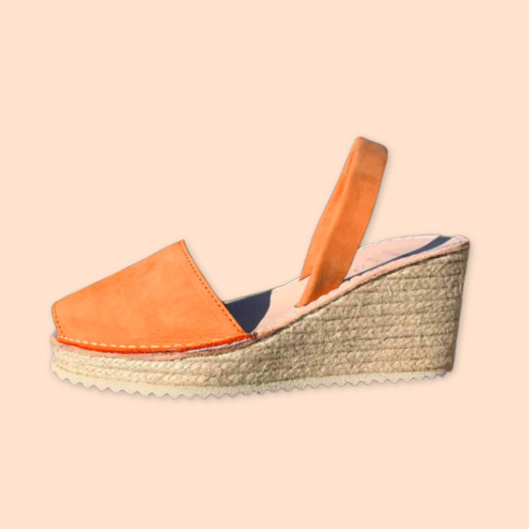 Mujer - Piel Nobuk - Cuña Alta Esparto - Color Naranja