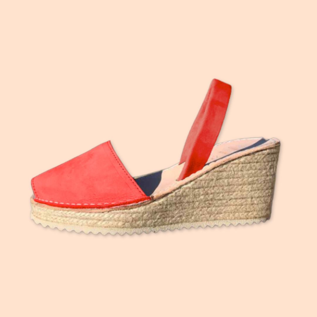 Mujer - Piel Nobuk - Cuña Alta Esparto - Color Rojo
