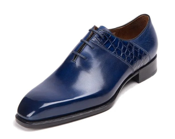 Handmade Men blue calf leather dress shoes, Mens blue oxfords shoes