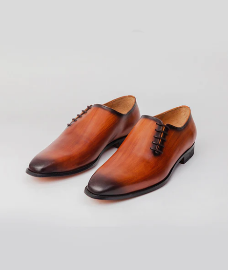 Handmade Men Cognac Lateral Lacing Whole Cut Oxford Shoes, Dress Shoes