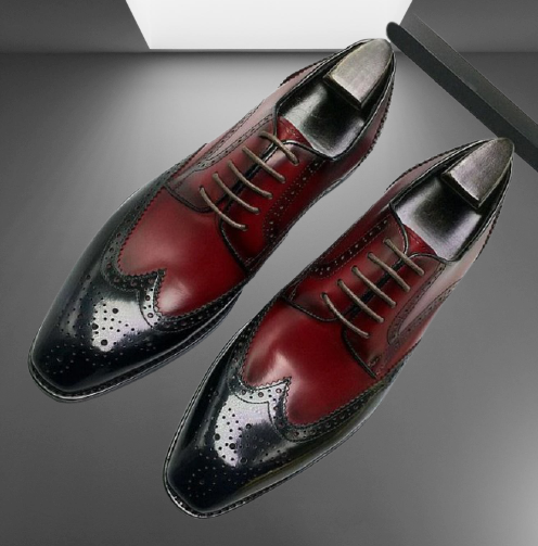 Handmade Mens Wing tip brogue dress shoes, Men two tone formal shoes