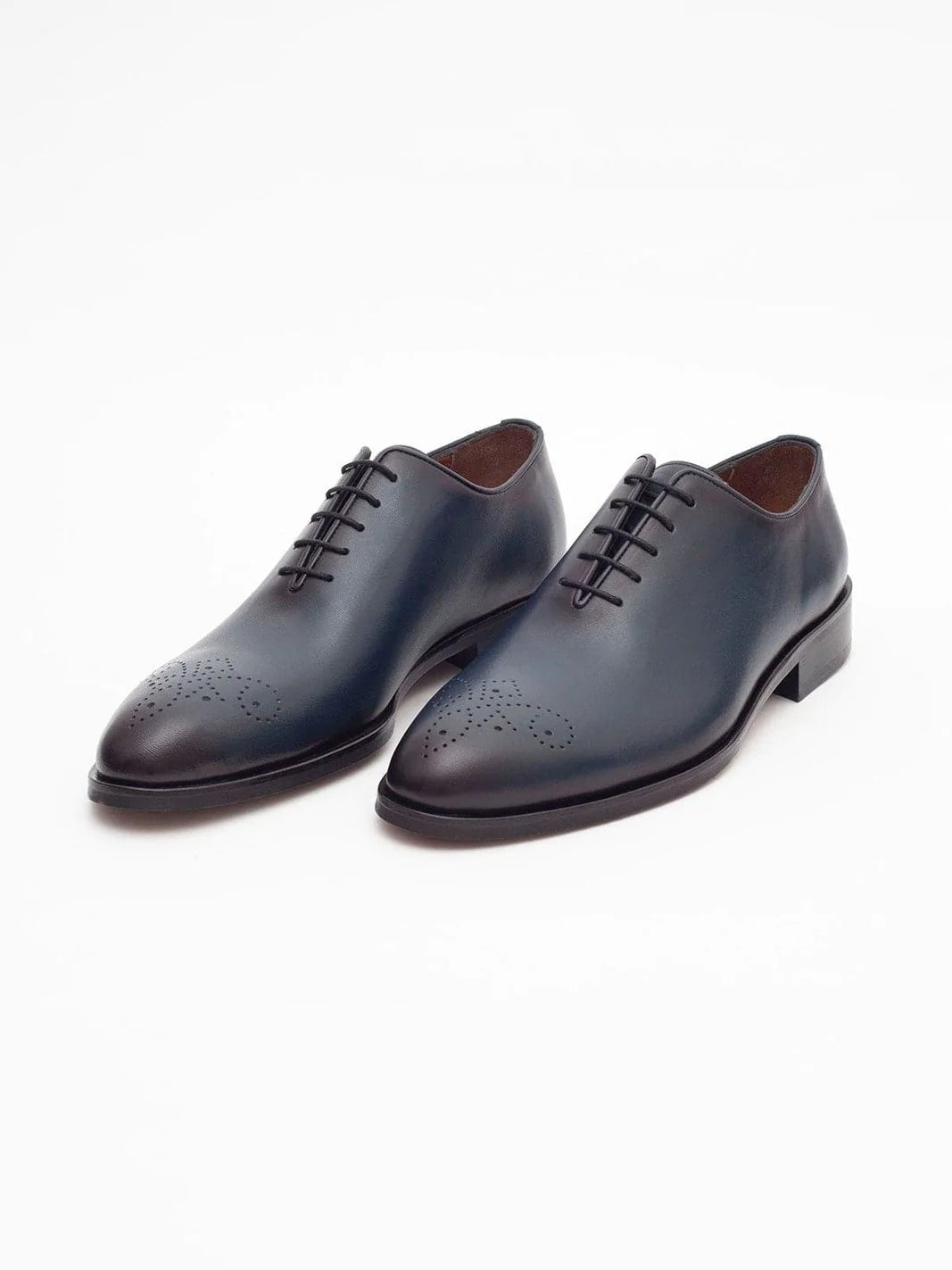 MENS SOLID BLUE WHOLE CUT OXFORD LEATHER DRESS SHOES, MEN OXFORDS SHOES