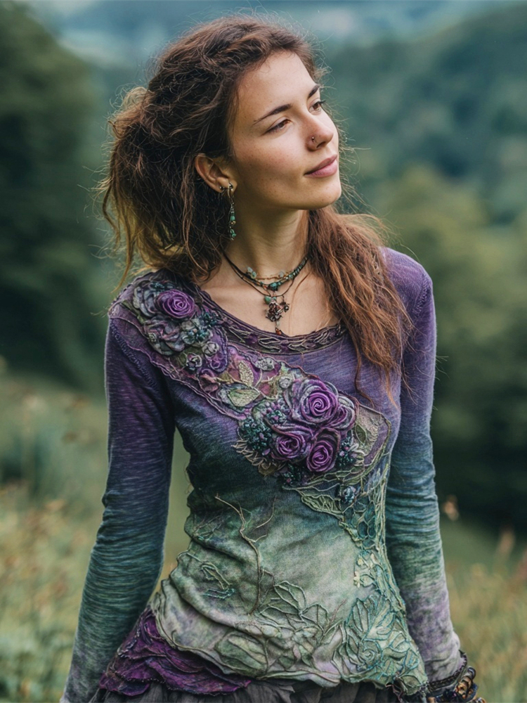 Purple Gradient Floral Tribal Women's Long Sleeve Shirt