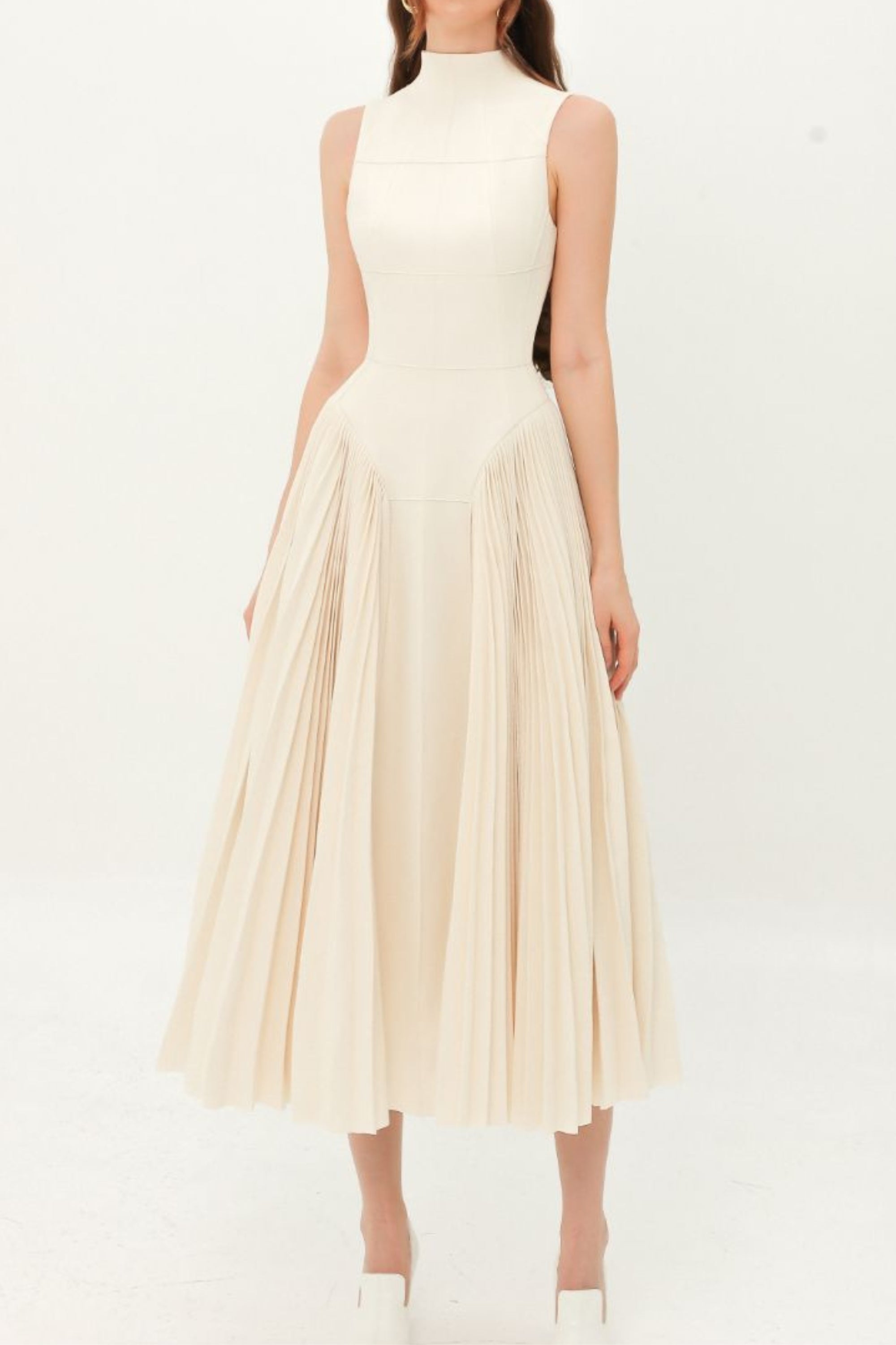 Nude Ruched Midi Dress