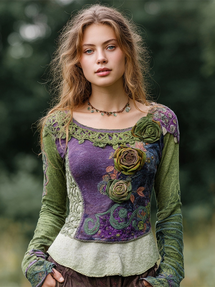 Vintage Gradient Rose Art Women's Long Sleeve Shirt