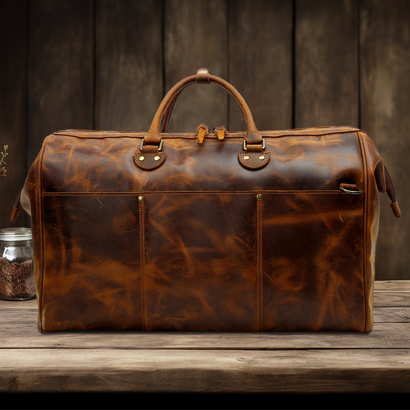 Vintage Leather Weekender Duffel Bag – Travel & Overnight Carry-On