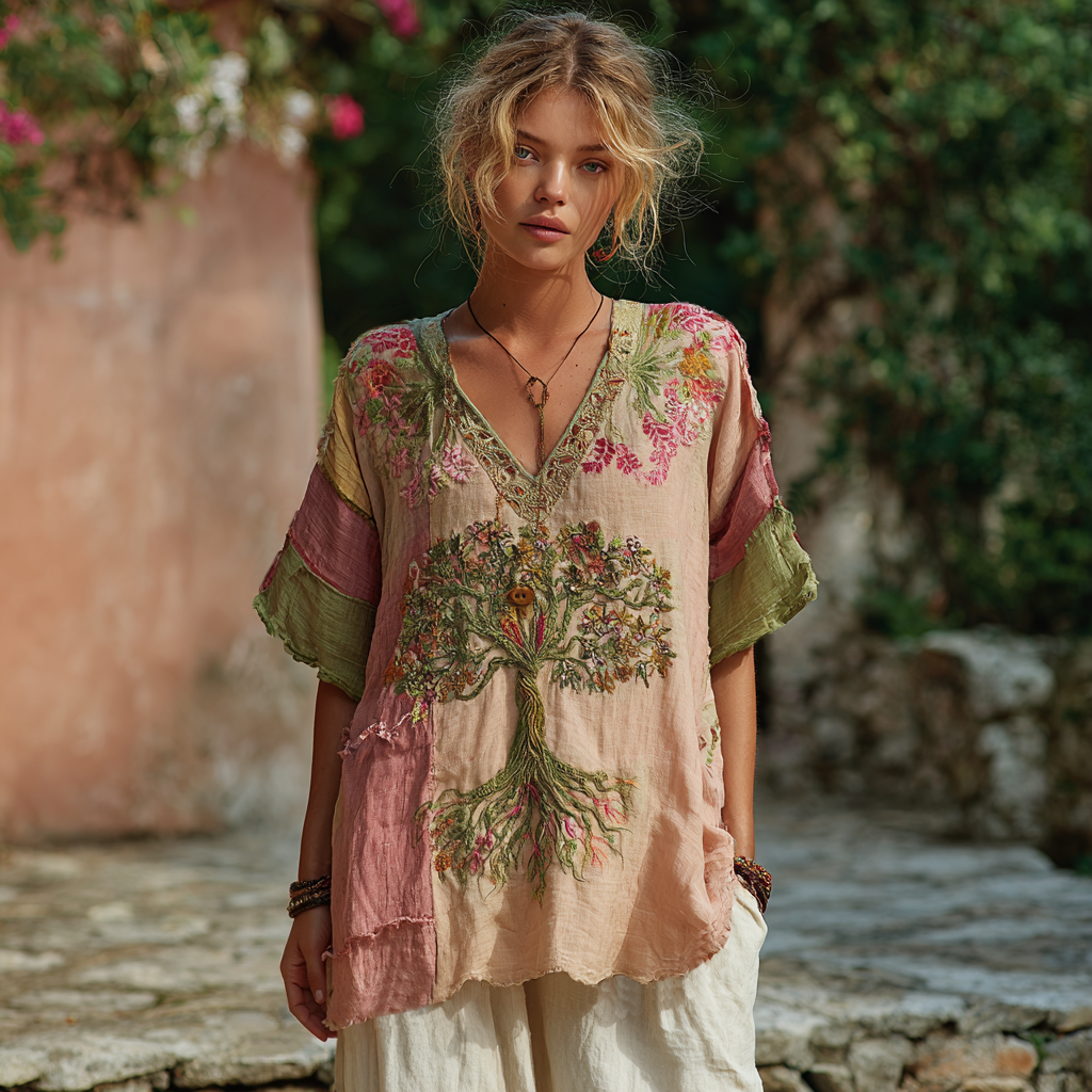 Vintage Tree Of Life Colorblock Floral T-shirt