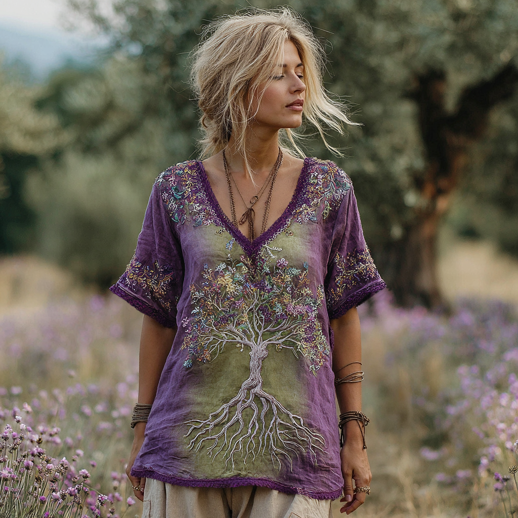 Vintage Tree Of Life Purple Floral Gradient T-shirt