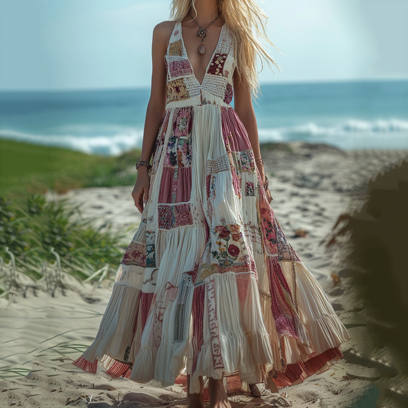 Women's Breast Cancer Awareness Holiday Patchwork Maxi Dress
