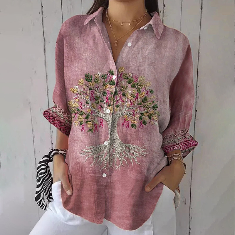 Women's Breast Cancer Consciousness Tree Of Life Webbing Long Sleeves Shirt