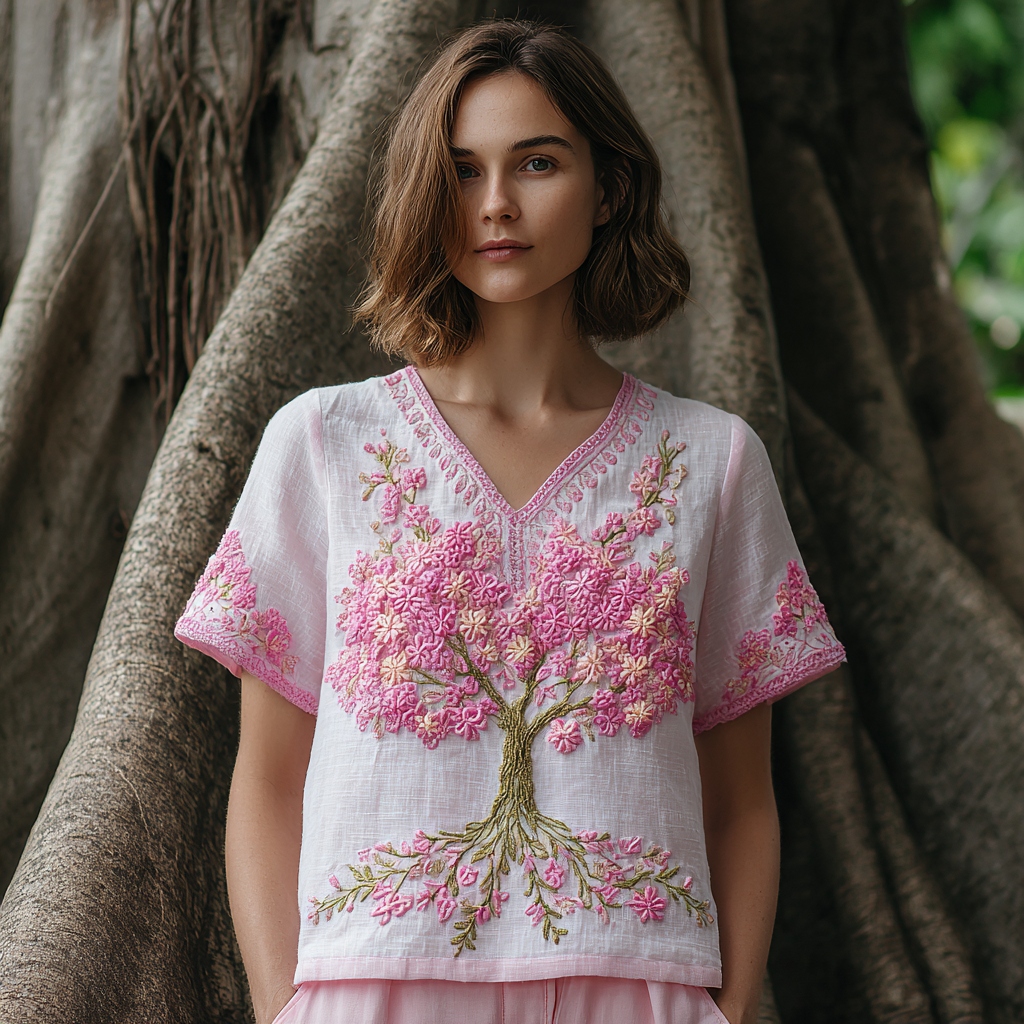 Women's Tree Of Life Breast Cancer Ribbon T-shirt