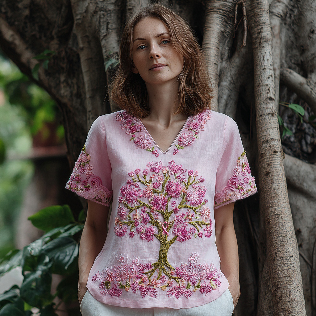 Women's Tree Of Life Breast Cancer Ribbon T-shirt