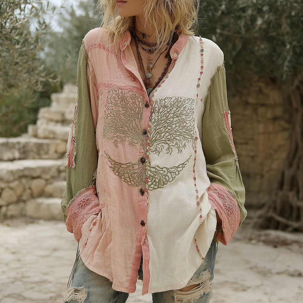 Women's Vintage Viking Tree Of Life Colorblock Long Sleeve Shirt